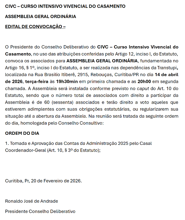 Assembléia Geral Ordinária – Edital de Convocação (14/04/2026)