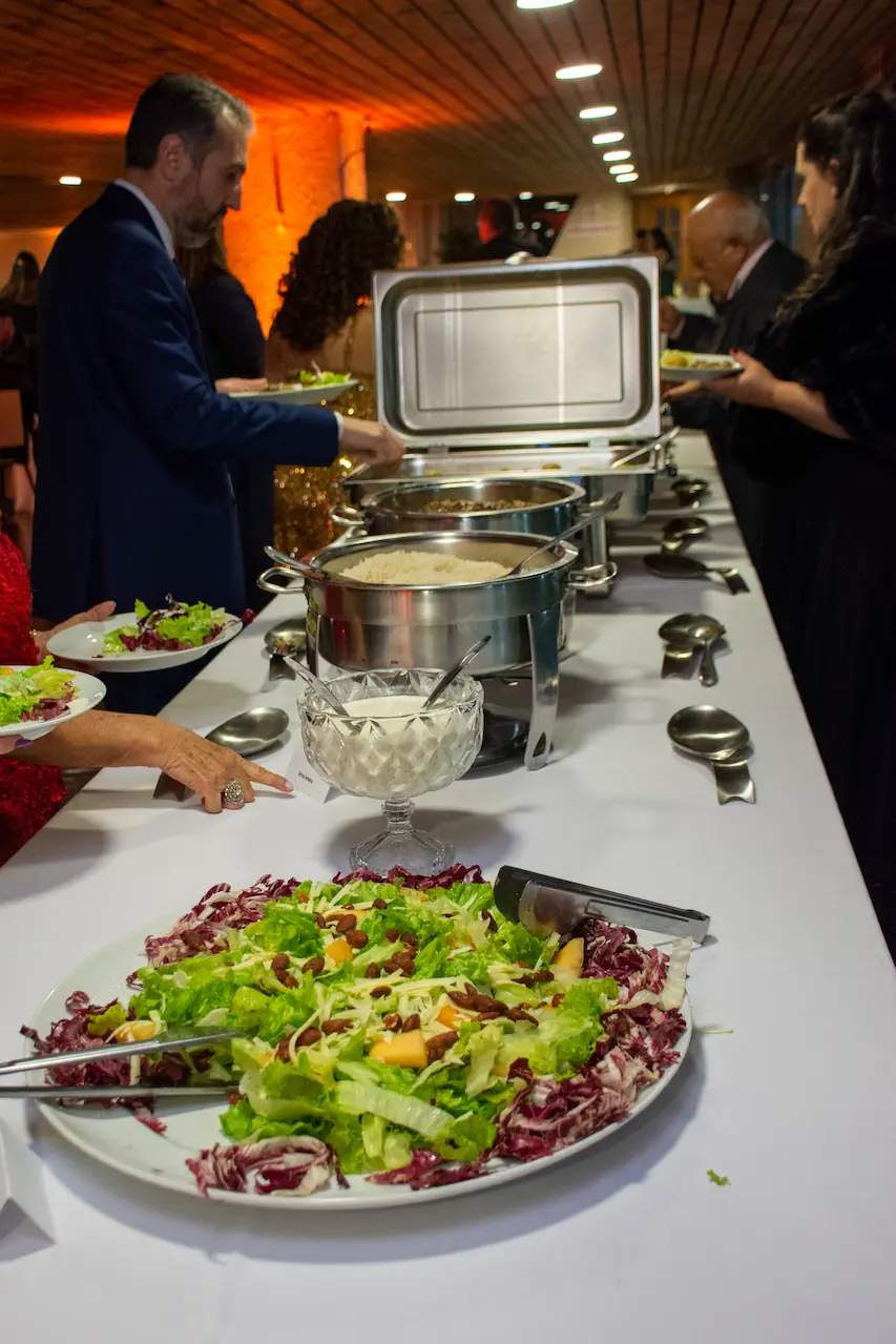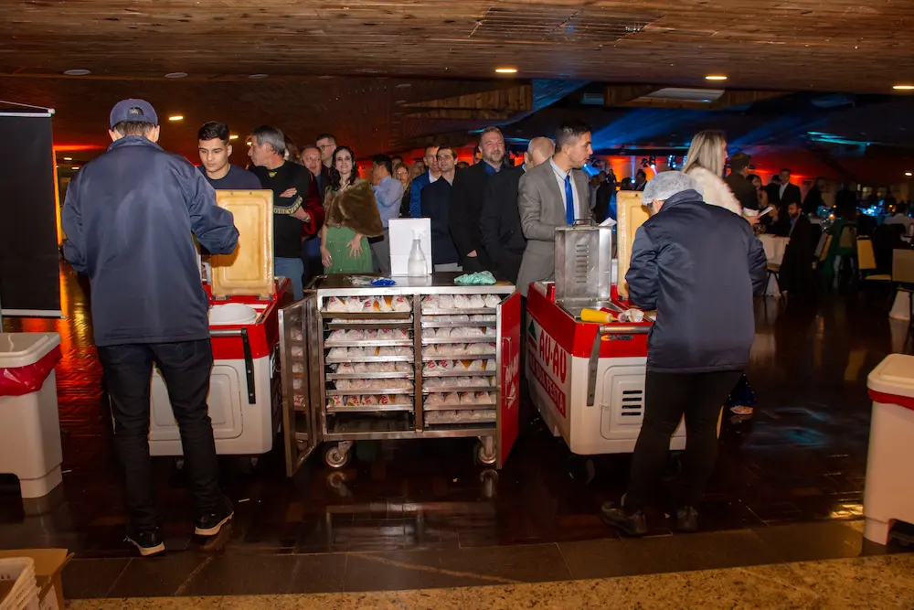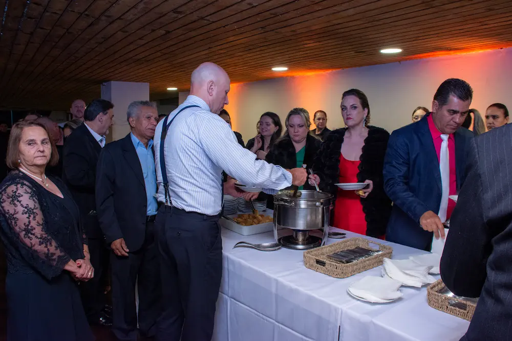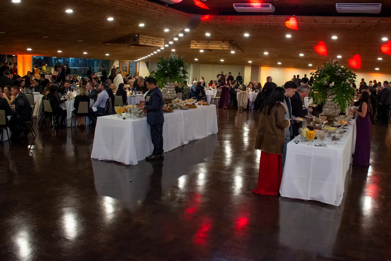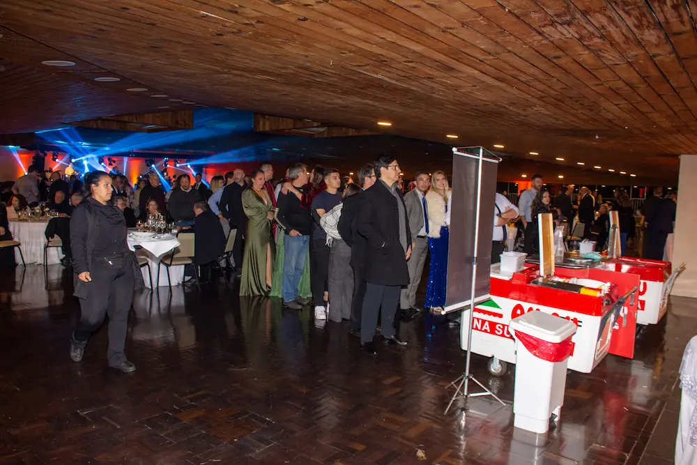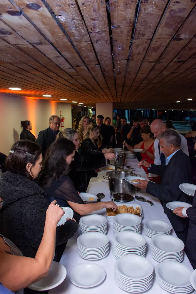 Na gastronomia, o cuidado também se destacou. Além do jantar servido, os convidados puderam contar com a já tradicional sopa da madrugada e, como um diferencial desta edição, o cachorro-quente oferecido trouxe ainda mais acolhimento e descontração para aqueles que permaneceram até o final.