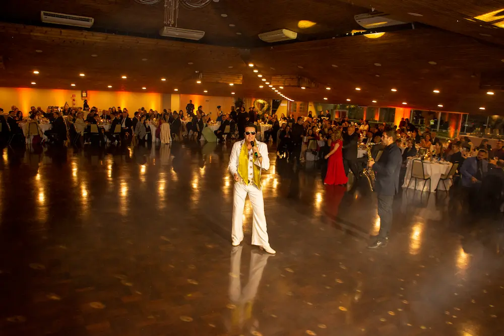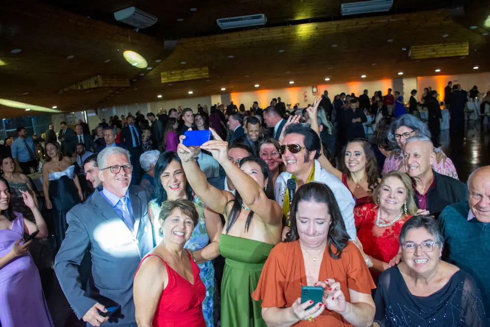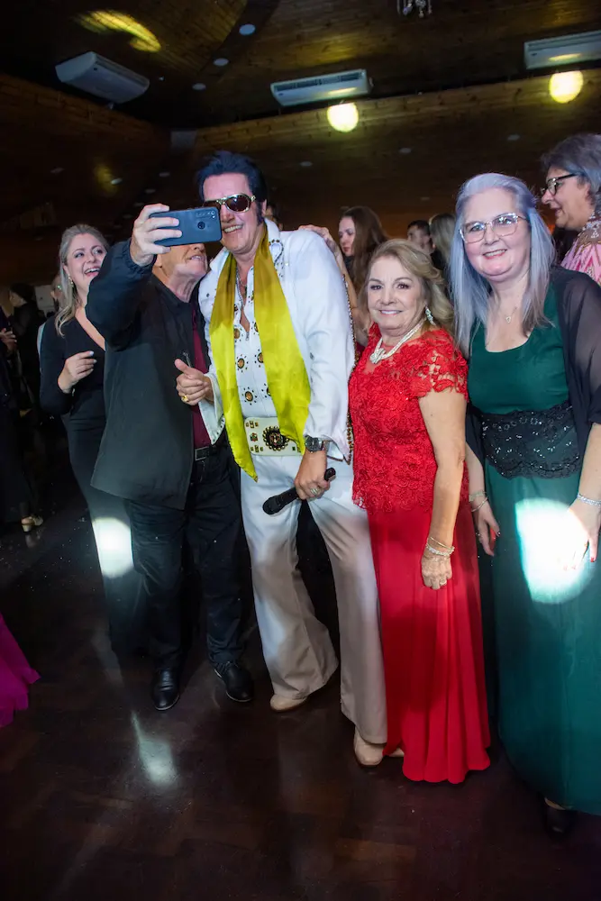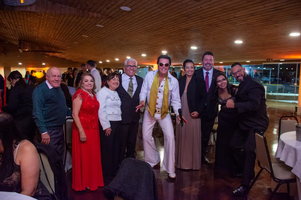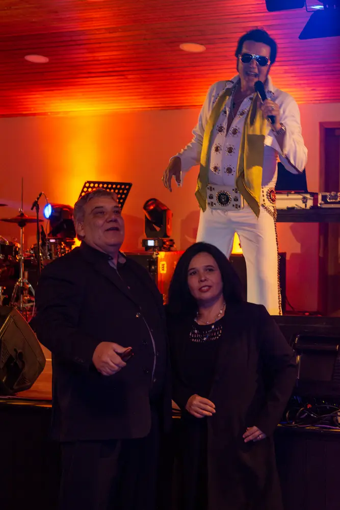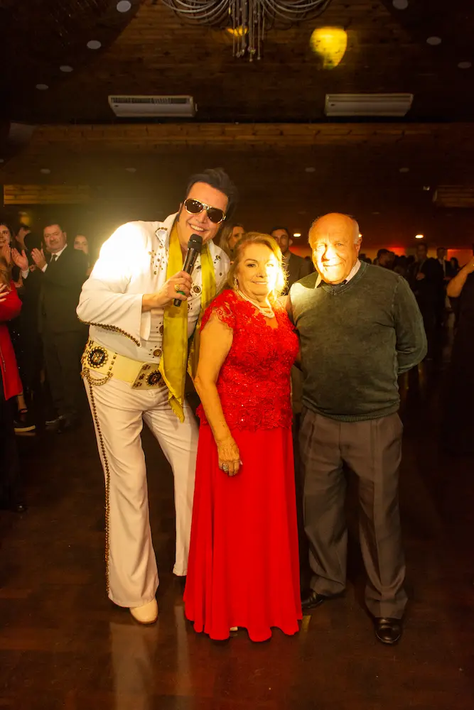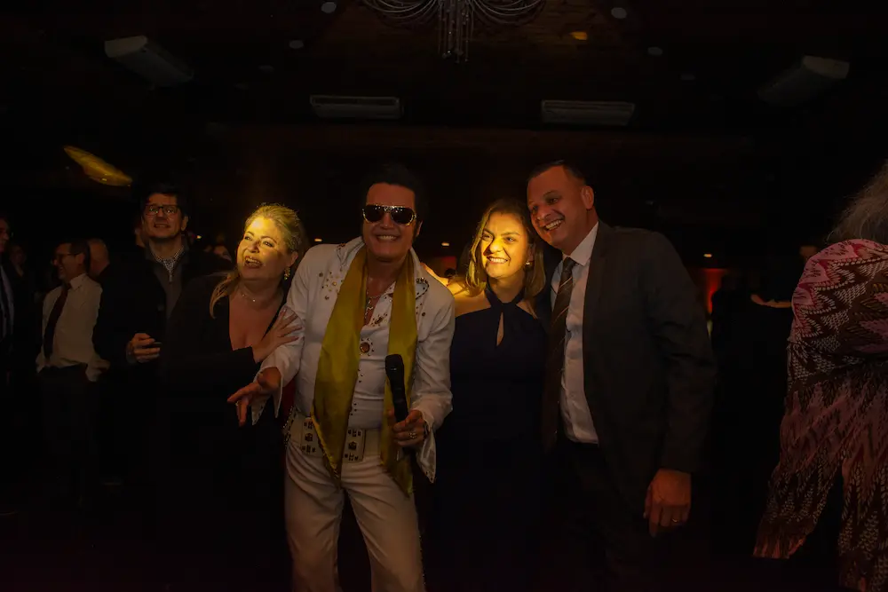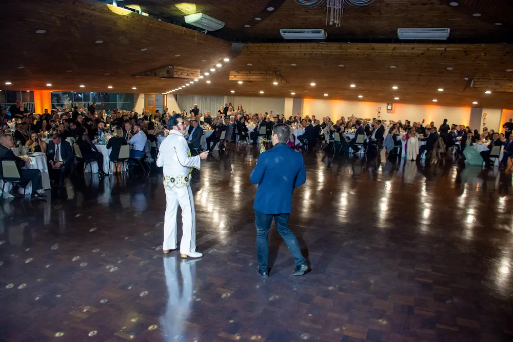 Logo no início da noite, uma atração diferenciada surpreendeu os presentes. Rogério Cordoni, conhecido como o Elvis de Curitiba, trouxe energia e entusiasmo com um mini-show de aproximadamente 45 minutos, envolvendo o público e dando o tom de celebração que marcou toda a noite.
