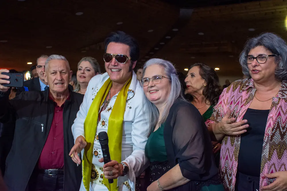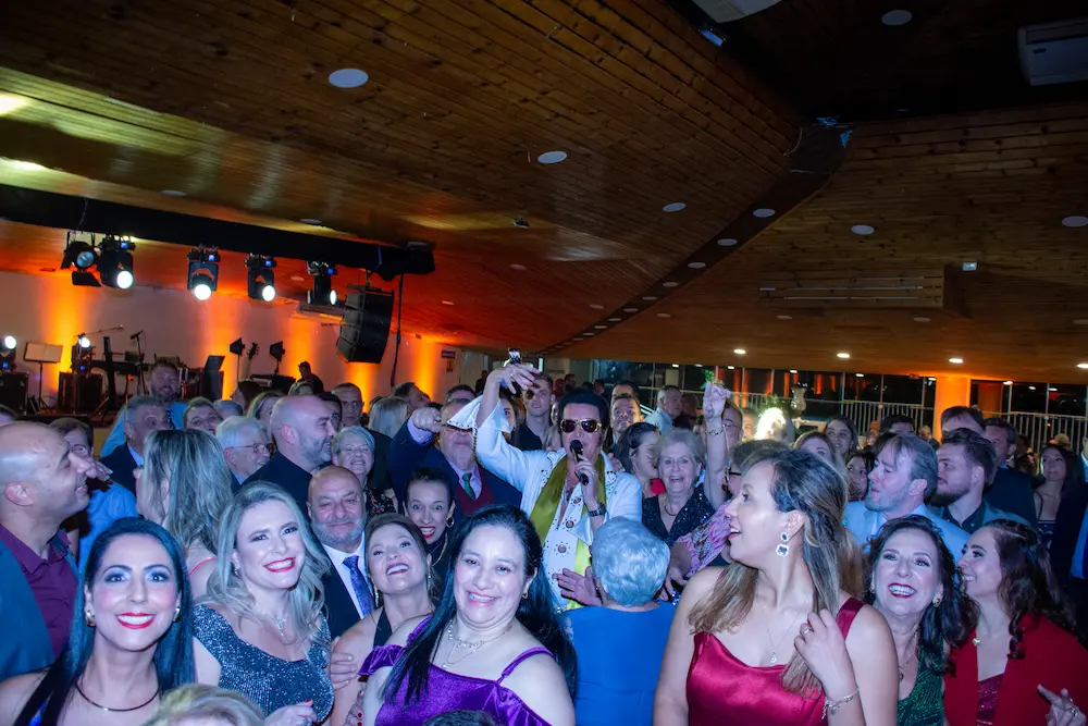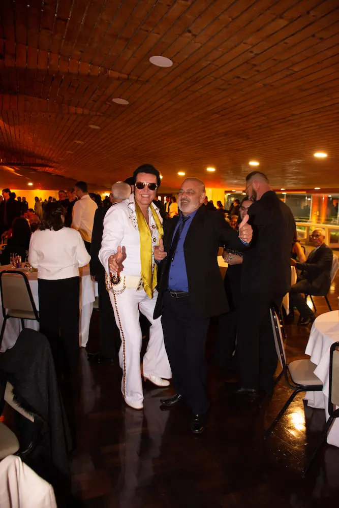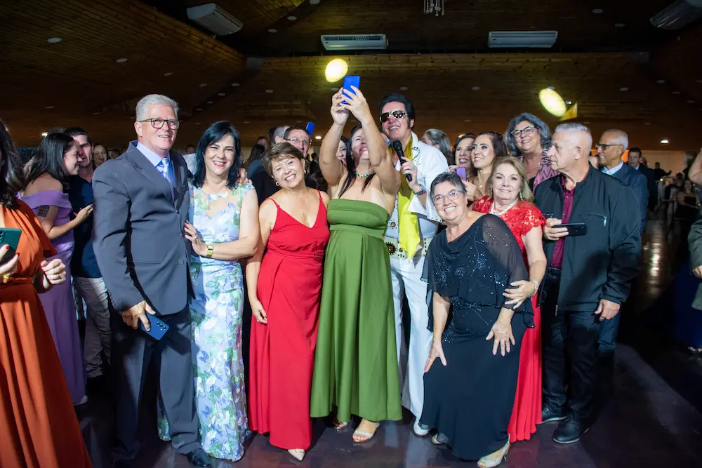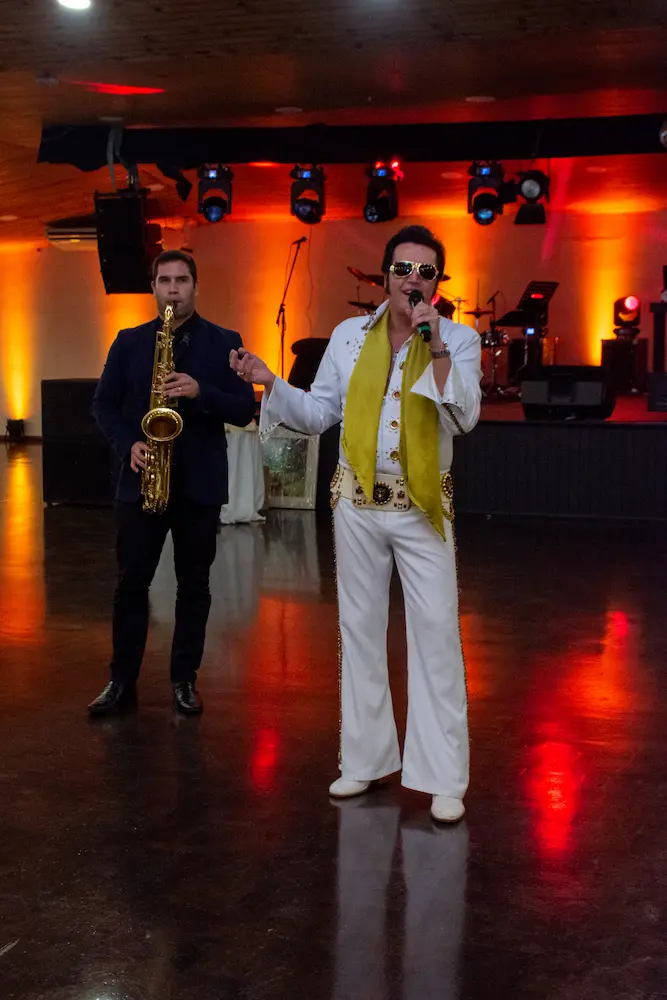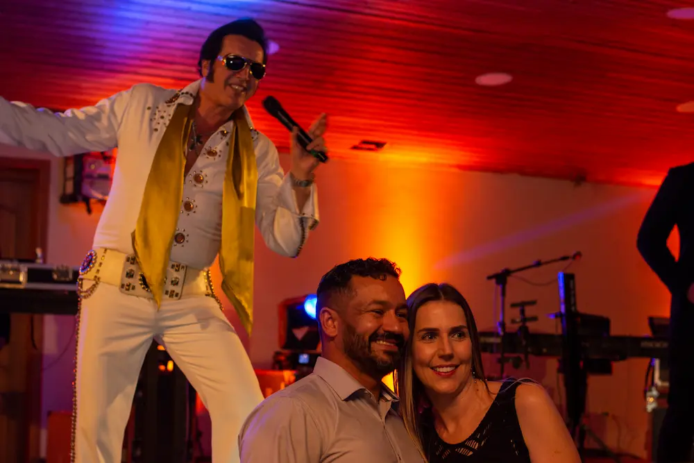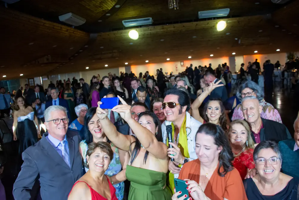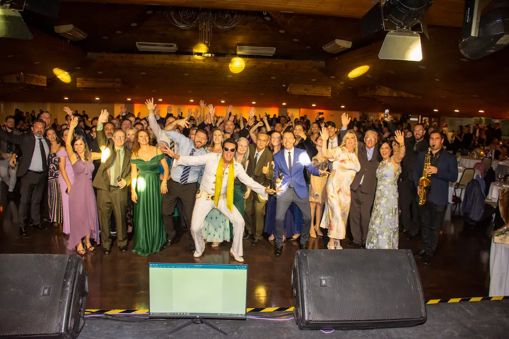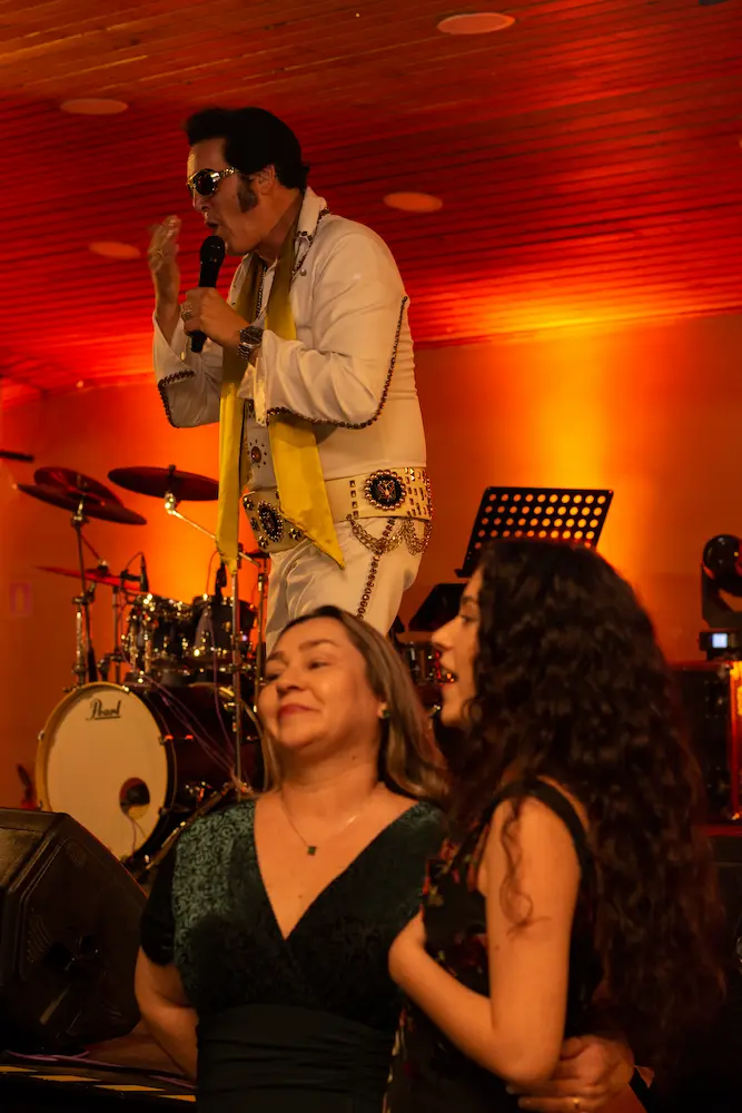 Logo no início da noite, uma atração diferenciada surpreendeu os presentes. Rogério Cordoni, conhecido como o Elvis de Curitiba, trouxe energia e entusiasmo com um mini-show de aproximadamente 45 minutos, envolvendo o público e dando o tom de celebração que marcou toda a noite.