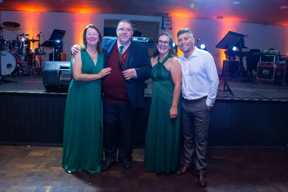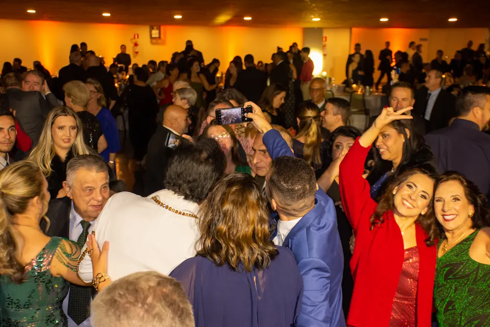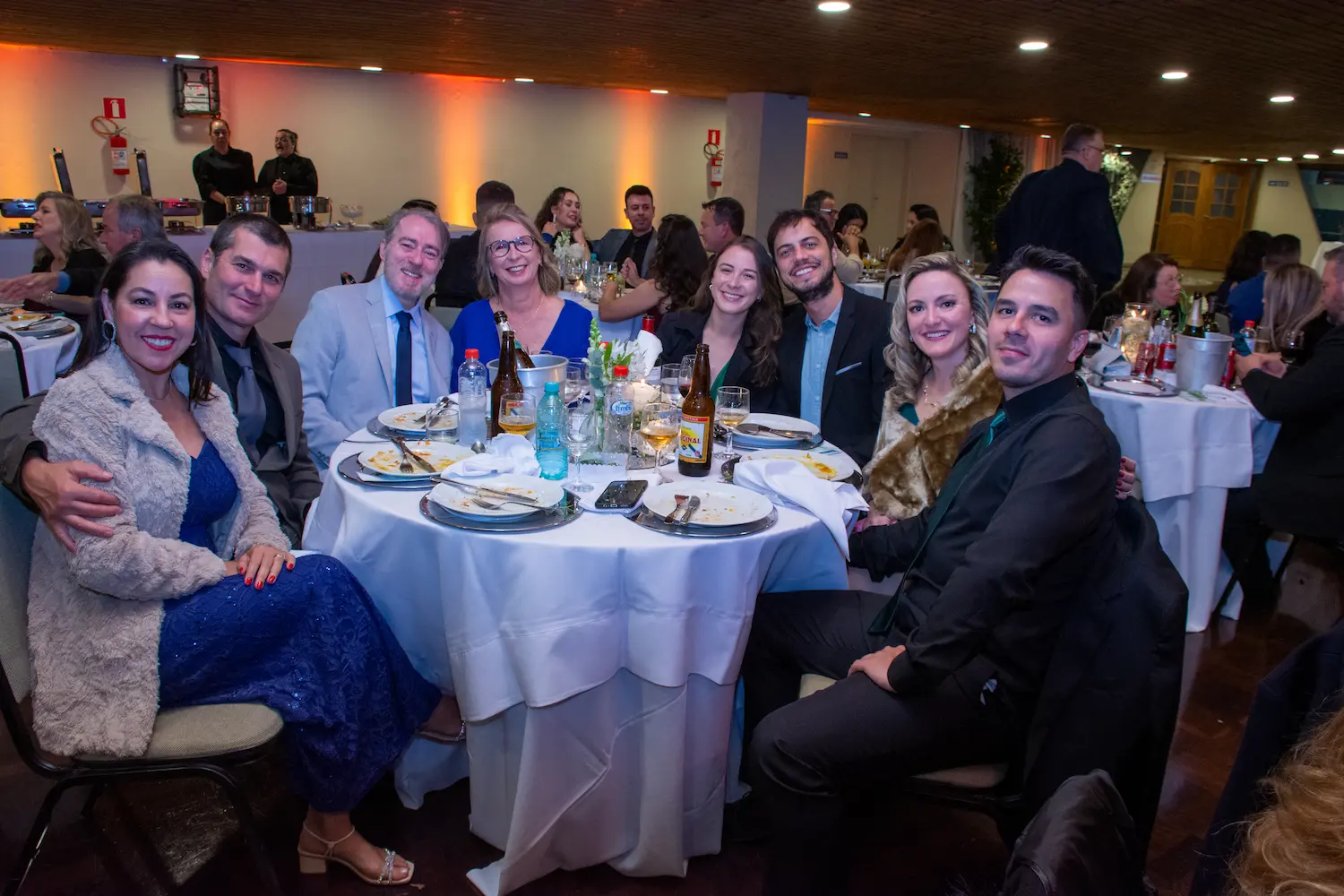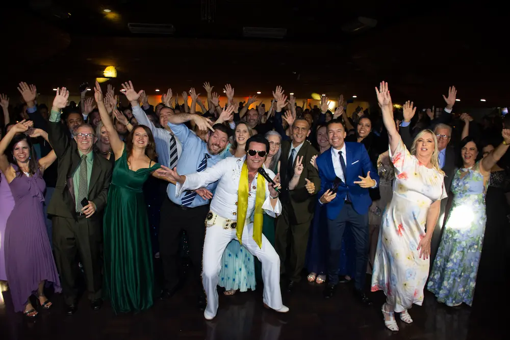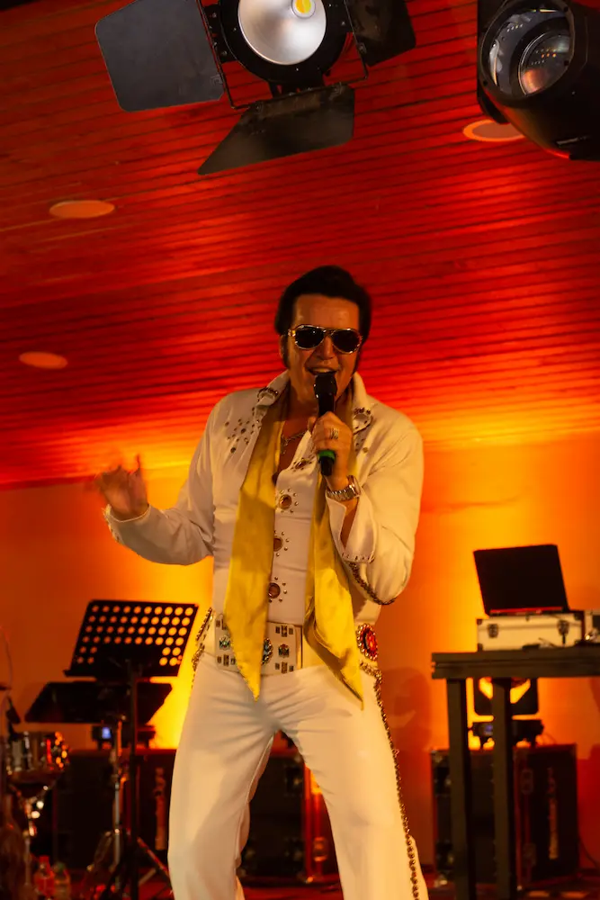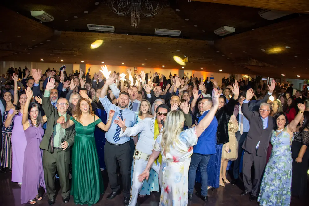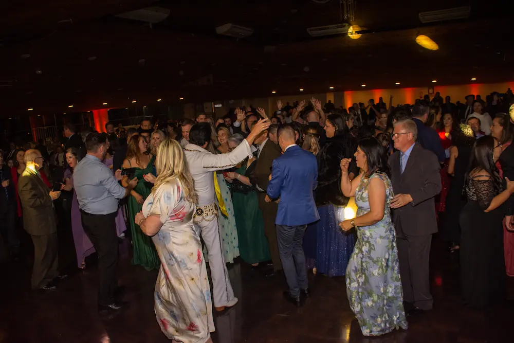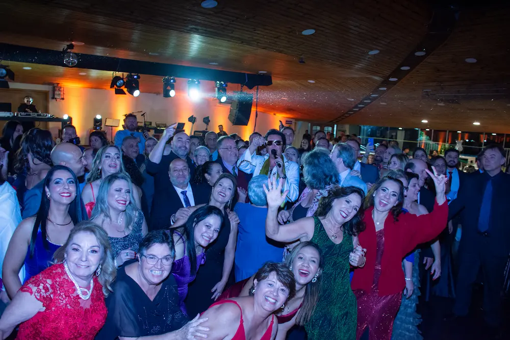 Logo no início da noite, uma atração diferenciada surpreendeu os presentes. Rogério Cordoni, conhecido como o Elvis de Curitiba, trouxe energia e entusiasmo com um mini-show de aproximadamente 45 minutos, envolvendo o público e dando o tom de celebração que marcou toda a noite.