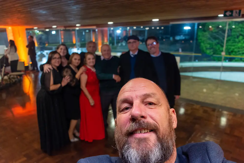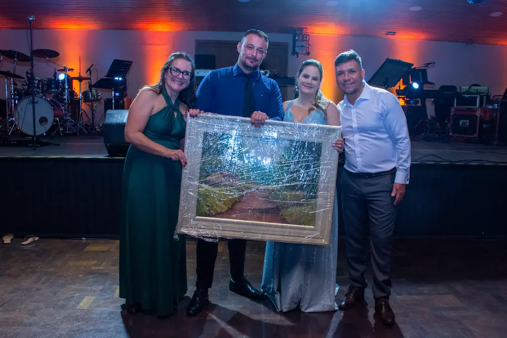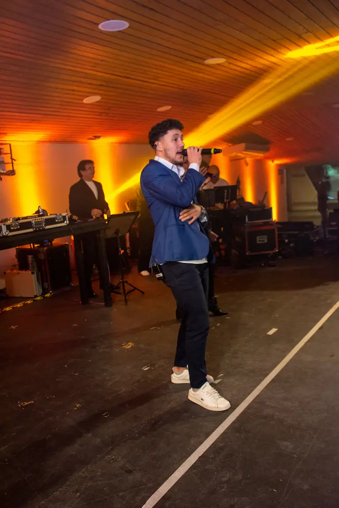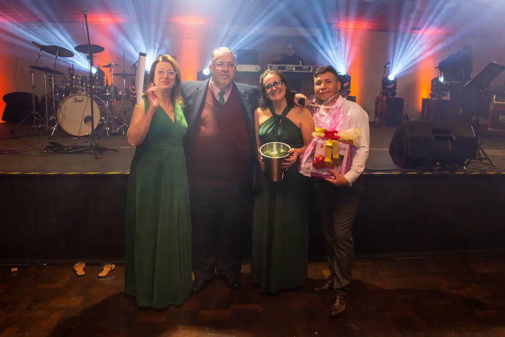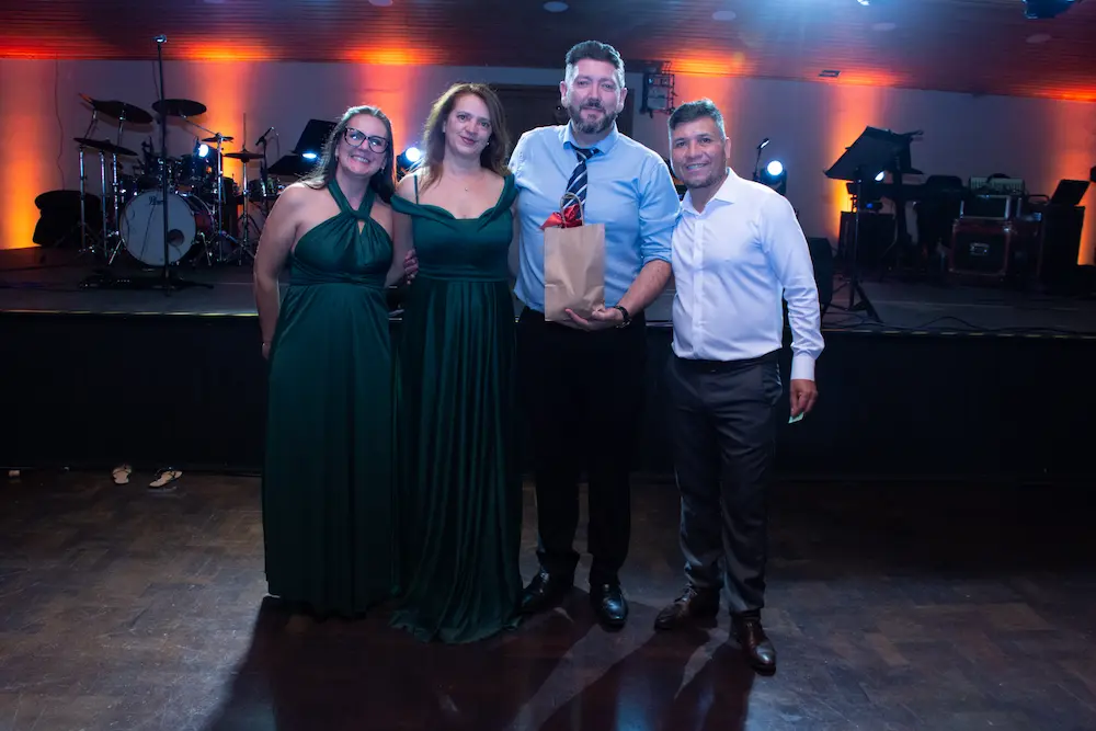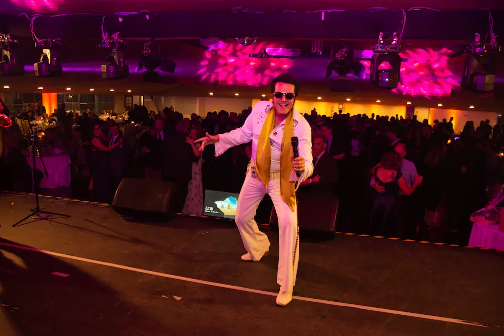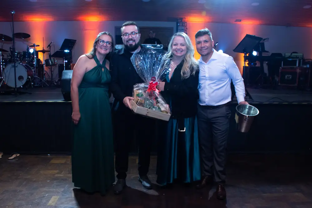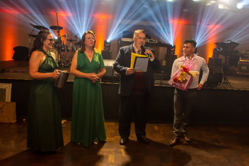 Logo no início da noite, uma atração diferenciada surpreendeu os presentes. Rogério Cordoni, conhecido como o Elvis de Curitiba, trouxe energia e entusiasmo com um mini-show de aproximadamente 45 minutos, envolvendo o público e dando o tom de celebração que marcou toda a noite.